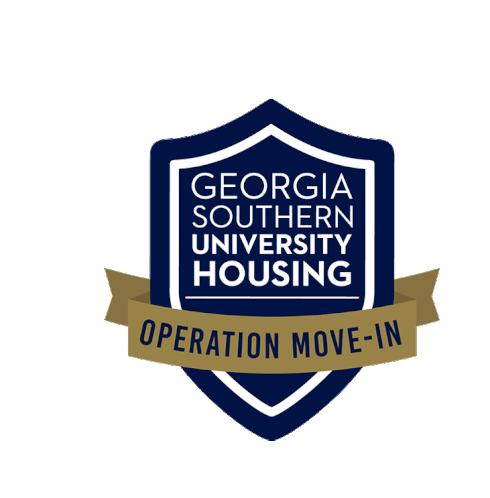 Official logo for Georgia Southern University Housing's Operation Move-In, featuring a blue shield and gold banner.