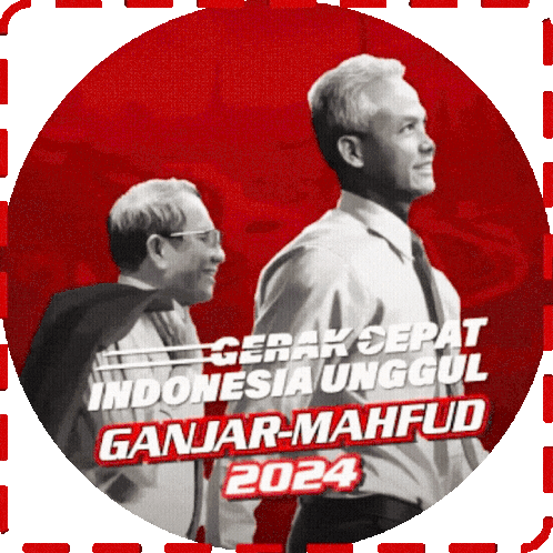 Ganjar Mahfud 2024 campaign sticker featuring Ganjar Pranowo and Mahfud MD, promoting 'Gerak Cepat Indonesia Unggul' for a superior Indonesia.