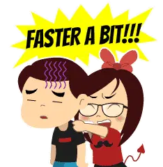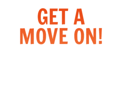 An animated sticker with 'GET A MOVE ON!' text, showing a character pushing a reluctant donkey to move.