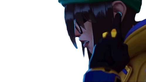Killjoy from Valorant adjusts her earpiece, ready for action, with a plea to 'Get Back Here'.