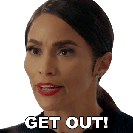 Daniella Hernandez, portrayed by Paula Patton, emphatically says "GET OUT!" in this animated sticker.