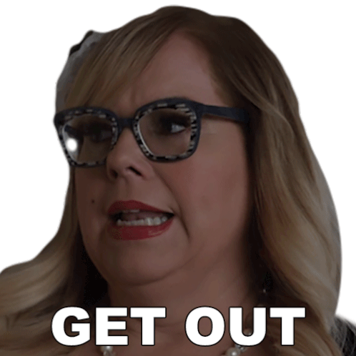Penelope Garcia from Criminal Minds, played by Kirsten Vangsness, emphatically says 'Get Out' with a stern expression.