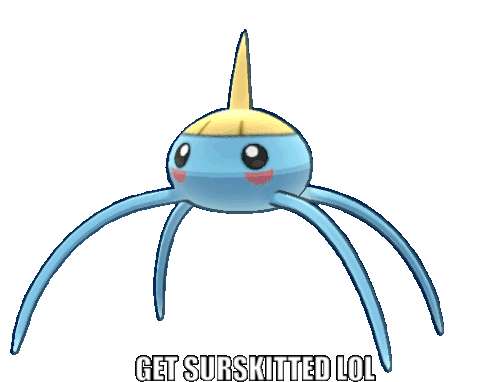 A cute Surskit Pokémon appears with the meme phrase 'GET SURSKITTED LOL', perfect for playful reactions.