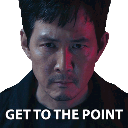 Seong Gi Hun from Squid Game looks intently, urging to 'GET TO THE POINT' with a direct expression.