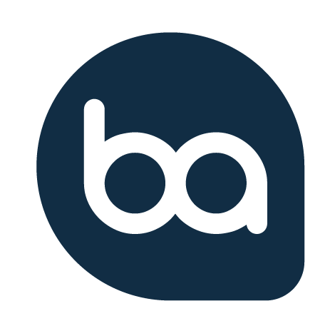 Animated logo for Getbaff, featuring stylized white 'ba' letters within a dark blue rounded square icon.
