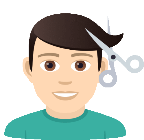 a man with a pair of scissors cutting his hair