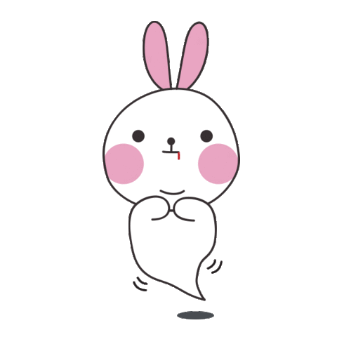 A cute animated bunny ghost with pink cheeks and ears bobs and wiggles, sometimes showing a nosebleed, perfect for Halloween fun.