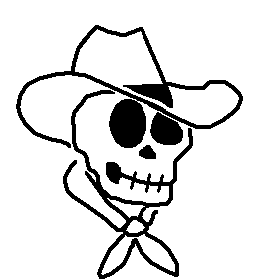 An animated sticker featuring a Ghostpolitics cowboy skeleton, wearing a hat and bandana, with a moving jaw.