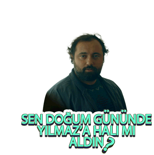Yılmaz from Gibi asks if you bought him a carpet for his birthday, with a serious and questioning expression.