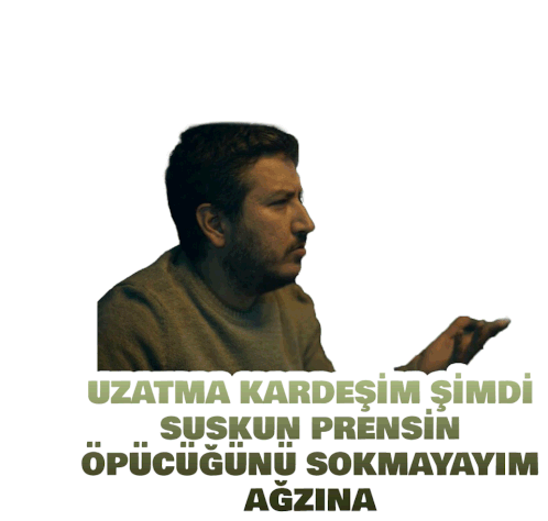 Feyyaz Yiğit as Yılmaz from Gibi, delivering a humorous threat about the 'Silent Prince's kiss'.