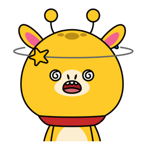 A cute cartoon giraffe character with spiraling eyes and a star circling its head, showing extreme dizziness or feeling faint.