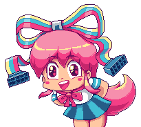 Giffany, the sentient video game character from Gravity Falls, depicted in charming pixel art with her signature pink hair and bow.