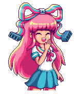 Animated sticker featuring Giffany from Gravity Falls, depicted as a pixel art girl with pink hair and a bow.