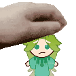 A pixel art sticker inspired by Gilbert Grape, featuring a hand placing grapes on a character's head.