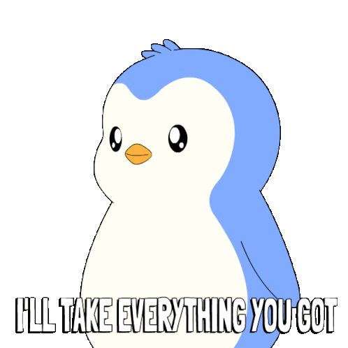a penguin holding a credit card with the words " i 'll take everything you got "