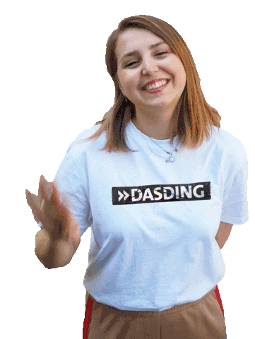Dasding Valeria Walerija waves hello with a friendly smile and a playful wink, radiating warmth.