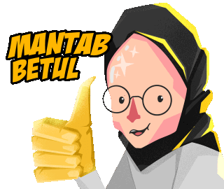 Aisya, a hijab-wearing girl with glasses, gives a cheerful thumbs-up, exclaiming 'Mantab Betul!' (Really great).