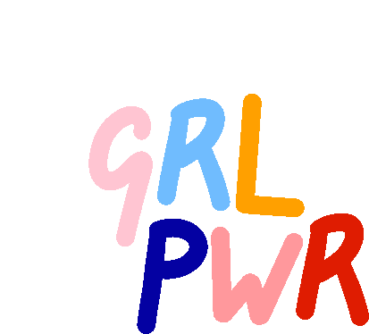 Vibrant animated sticker featuring the empowering phrase 'GRL PWR' in colorful, bubbly letters, celebrating girl power.