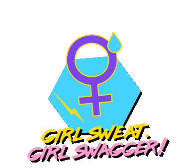 Empowering female symbol with sweat drop, lightning, and 'Girl Sweat Girl Swagger' text, showcasing confidence.