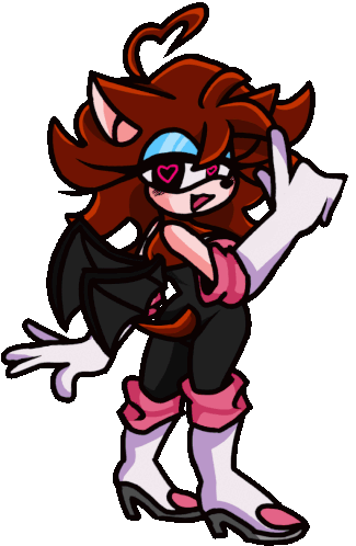 Stylized Girlfriend FNF Rouge the Bat character with heart eyes and a sassy gesture, featuring red hair and bat wings.