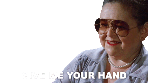 Tangina Barrons from Poltergeist extends her hand with the iconic phrase "GIVE ME YOUR HAND."