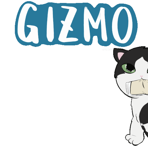 Gizmocat, the mischievous black and white cat, walks away with a packet of silverware in its mouth.