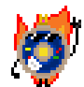 An animated pixel art sticker of Gladsetmad King Don, a cool donut character wearing a crown and sunglasses, surrounded by flames.