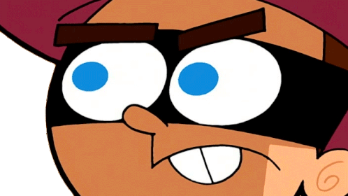 Timmy Turner from Fairly OddParents gives an intense, serious glare, keeping a watchful eye on something.