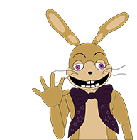 Glitchtrap from Fnaf waves hello with a wide, toothy grin, inviting interaction.