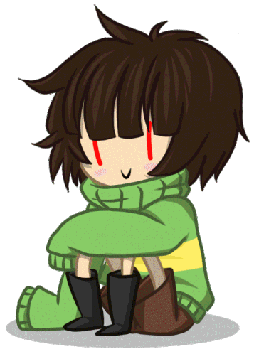 A cute Glitchy Chara character transforms into a scary, distorted version with glitch effects and unsettling eyes.