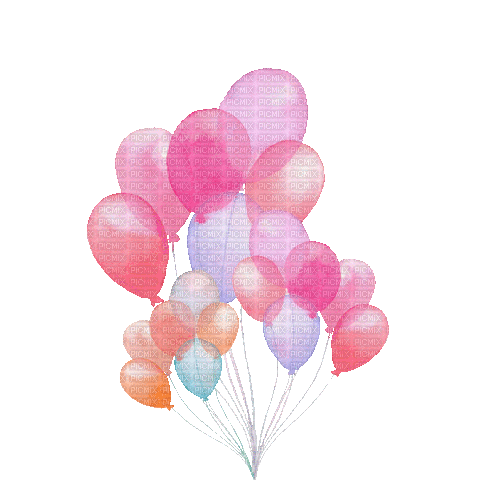 A vibrant cluster of pink, purple, and blue balloons, perfect for celebrations and festive messages.