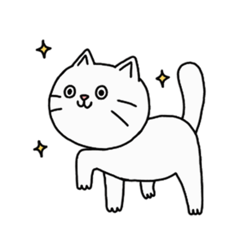 A charming white cartoon cat with sparkling stars, lifting a paw in a playful pose, radiating a cute glow.