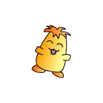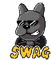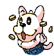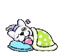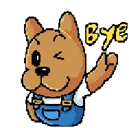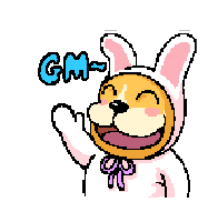 A happy pixel art dog in a white bunny suit waves its hand, with "GM-" appearing next to it, signifying Good Morning.