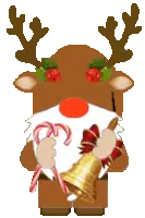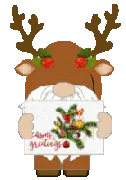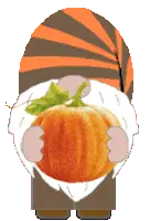 Animated sticker of a cute cartoon gnome girl with a colorful hat, holding a pen. Perfect for creative messages.