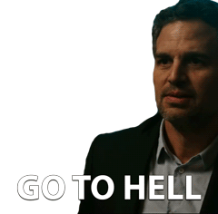 Mark Ruffalo from Now You See Me says 'Go To Hell' with a serious expression, conveying strong disapproval.