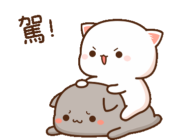 A determined white cat rides a sad grey cat, urging it forward with a 'Go!' caption.