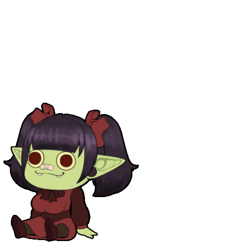 Phoebe Bane, the cute goblin girl with pigtails and a red dress, is animated being launched or tossed.