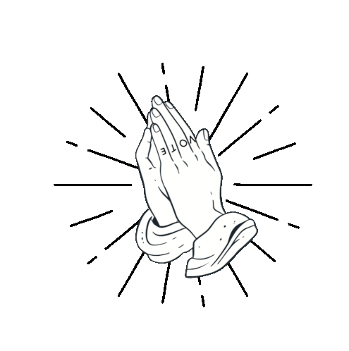 Praying hands with 'VOTE' tattoo and 'God Bless the Mute Button' text, a humorous take on political debates.