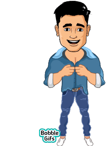 A cartoon man opens his shirt to reveal an image of God Hanuman, a Bobble Gifs sticker for devotees.