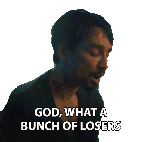 Aidan Gallagher as Number Five from The Umbrella Academy says 'God, what a bunch of losers' with a dismissive expression.