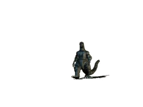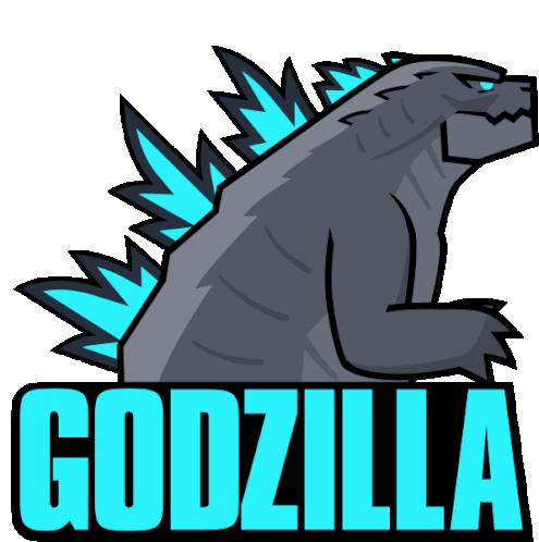 An animated cartoon Godzilla with glowing blue spines lets out a powerful roar, with the word 'GODZILLA' displayed below.