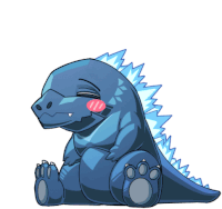 A cute, chibi-style Godzilla character is depicted sleeping peacefully, with a 'Zzz' bubble indicating slumber.