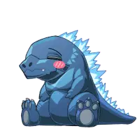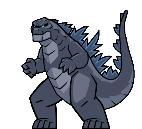 Animated Godzilla, the legendary kaiju, unleashing its powerful blue atomic breath in a stylized form.
