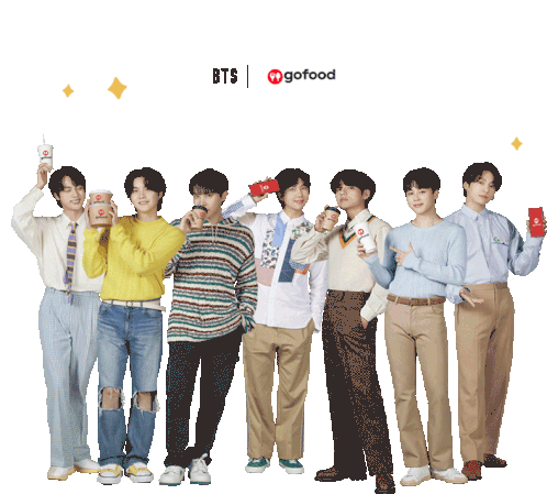 BTS members promote Gojek's Gofood service with the Vietnamese message 'Don't let me be hungry'.