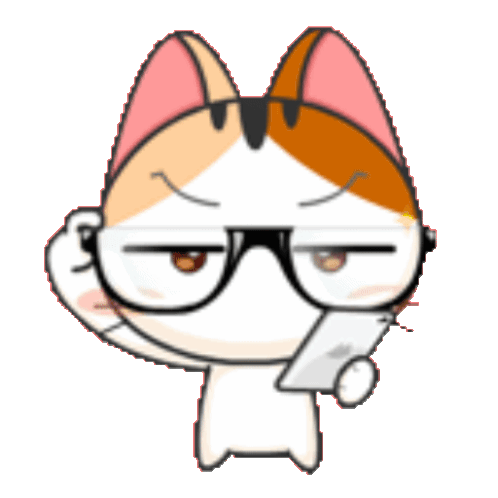 a cartoon cat wearing glasses is holding a phone