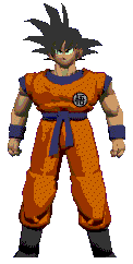 A pixel art rendition of Goku from Dragon Ball Z, depicted as a spinning collectible sticker.