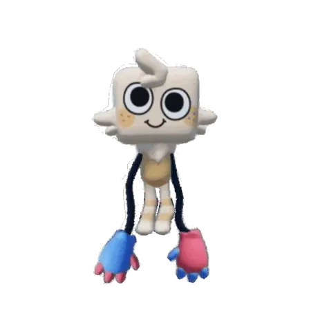 Goob from Dandys World, a big-eyed cartoon character, gets a hat placed on its head in this charming animated sticker.