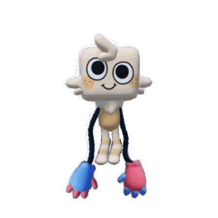 a cartoon character with big eyes and long arms is waving