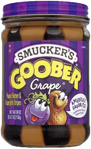 a jar of smucker 's goober grape peanut butter