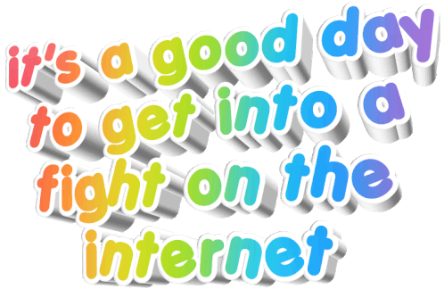 A colorful animated text sticker declares "it's a good day to get into a fight on the internet," perfect for online debates.